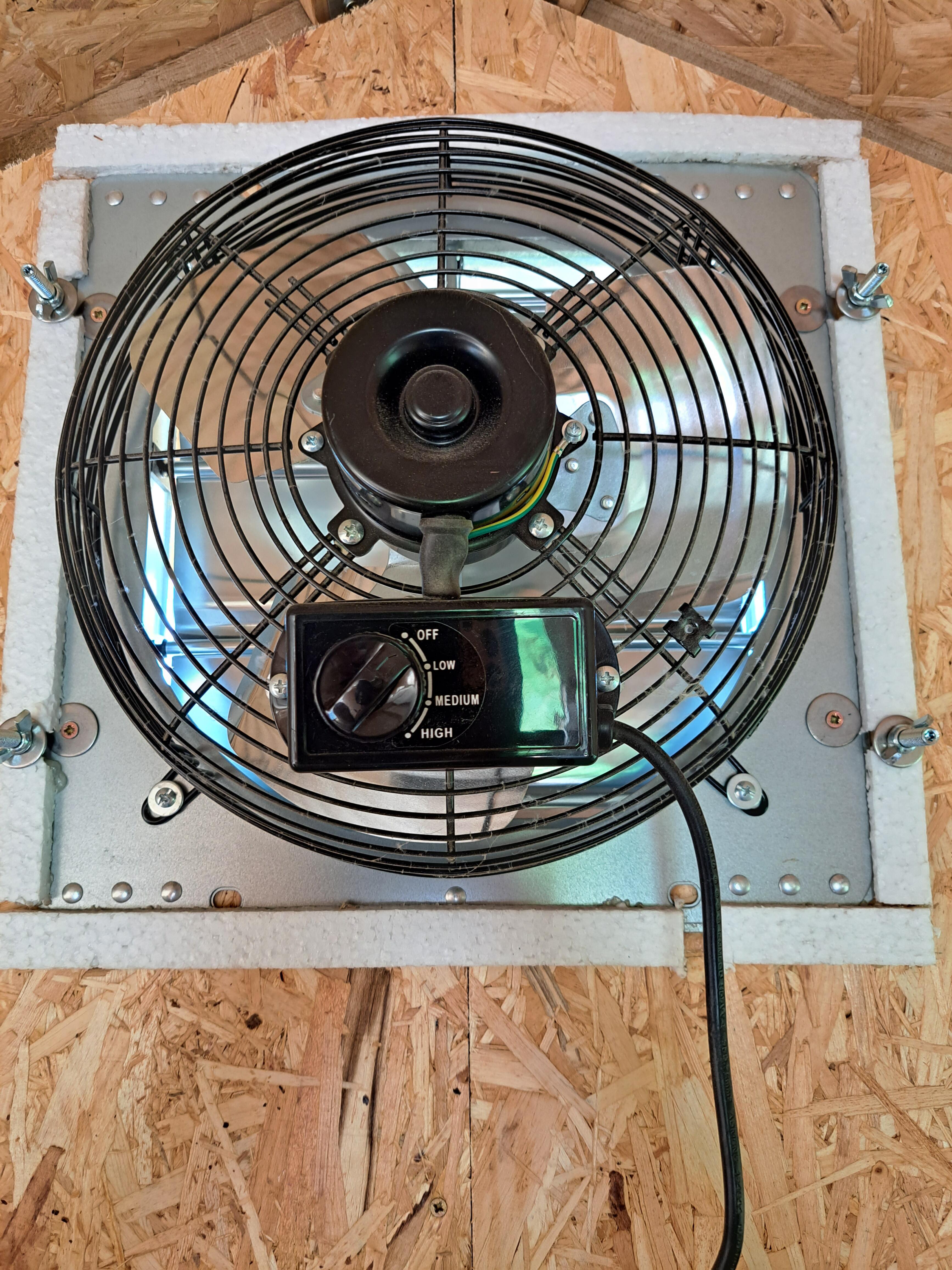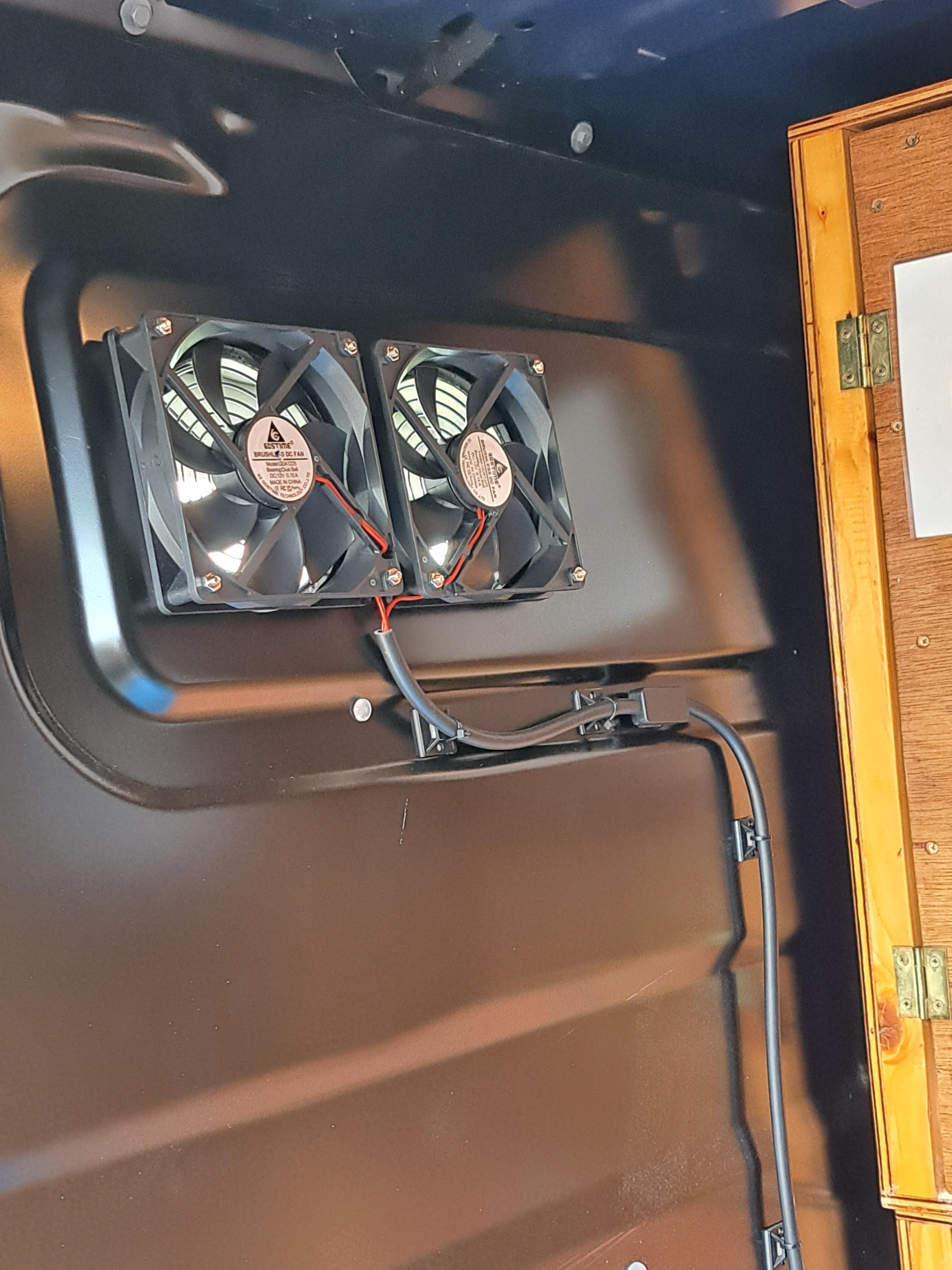 Extractor Fan in both shedsthis takes out hot air pules up cold air from the floor vents